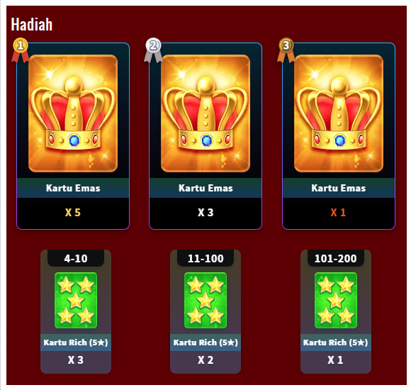 3. Turnamen harian akan berlangsung dari 20:00 hingga 23:59 WIB, dengan 1,700 hadiah harian senilai Rp 43,650,000. Akan ada 42 turnamen selama periode promosi.